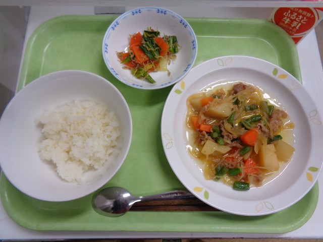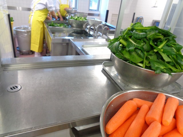 今日の小松菜は世田谷区産です。1枚ずつきれいに水洗いをしてから調理します。