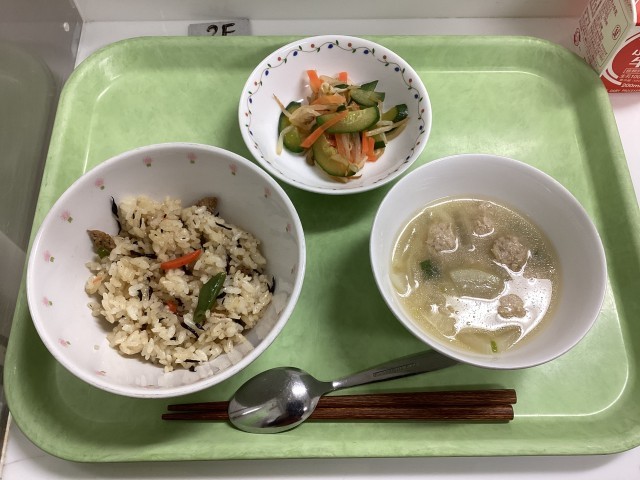 だしの中にゆっくりとつくねを加え、野菜を加えて煮ています。つくねの中には砂肝ミンチを加えて鉄分を多くとれる様になっています。しょうがなどを多く混ぜ、砂肝の臭みを分かりにくくしています。
