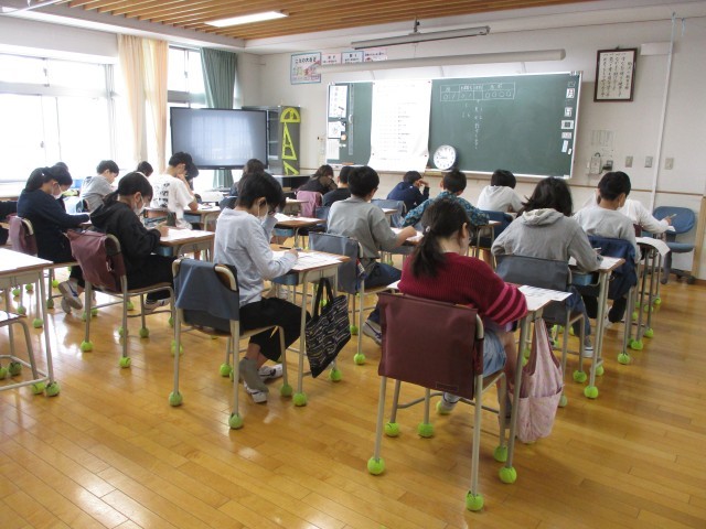 上:本日、6年生は全国学力・学習状況調査でした。国語・算数・理科の3教科でしたが、どの子も集中して取り組みました。