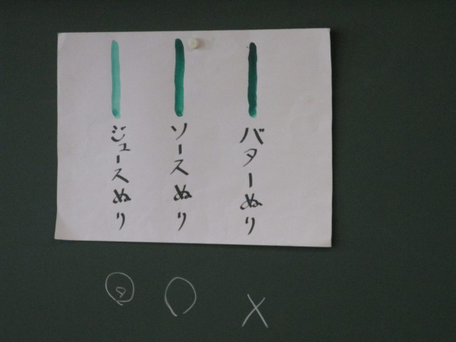 中・下:3年生が絵の具の基本的な塗り方を学んでいます。水彩画のよさを引き出すには、「ジュースぬり」が良いとのことです。
