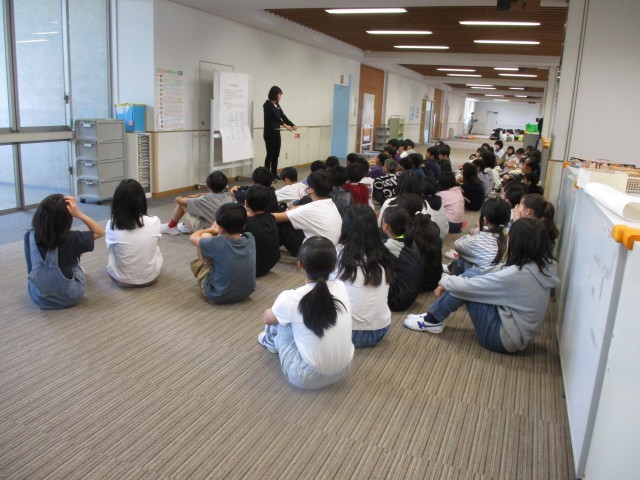 今朝は学年朝会でした。学年ごとに一箇所に集まり、先生方の話を聞きます。今週の予定や生活の決まりの確認など、学年間の足並みがそろうようにしています。