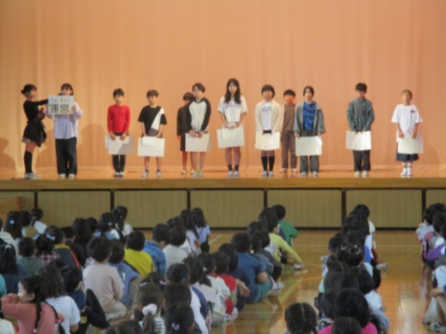 今朝は委員長紹介集会がありました。九人の委員長が、それぞれの活動内容や全校へのお願いを堂々と伝えることができました。会の最初から最後まで自分たちでやりきることができ、大変感心しました。
