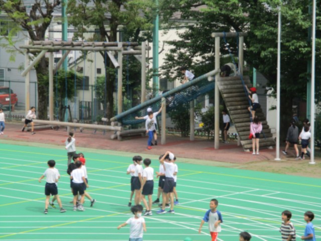今日はロング昼休みでした。体力向上の取組の一つですが、掃除の時間がなく30分くらい遊ぶことができます。どの子も笑顔いっぱいで元気良く遊んでいます。子どもたちの笑顔を見られると、本当にうれしいです。