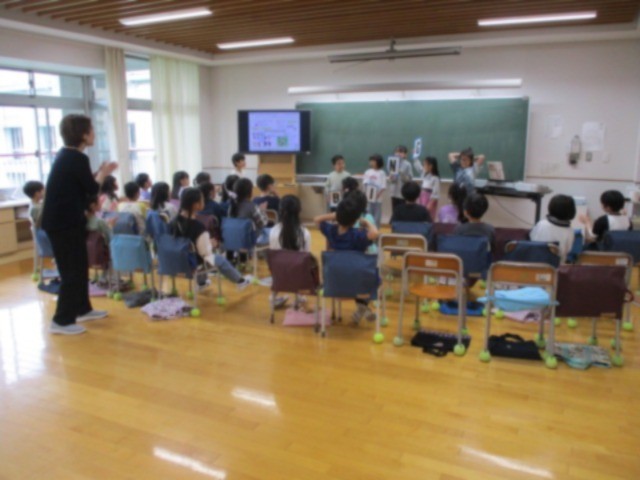 上・下:2年生の音楽です。世界の遊び歌に取り組んでいます。「こいぬのビンゴ」と「ロンドン橋」を楽しく歌いながら遊びました。どの子も笑顔いっぱいでした。