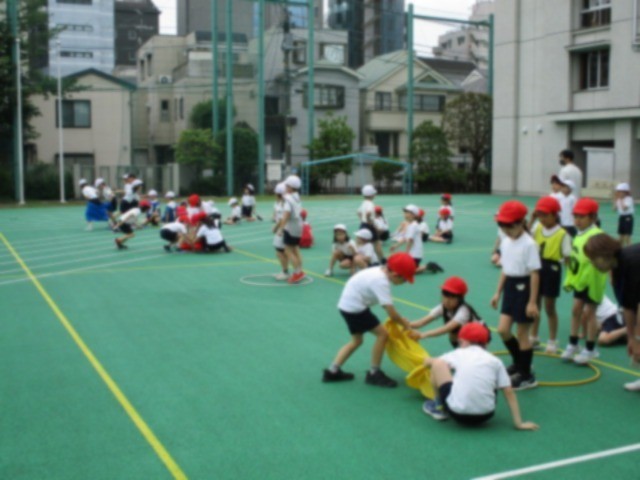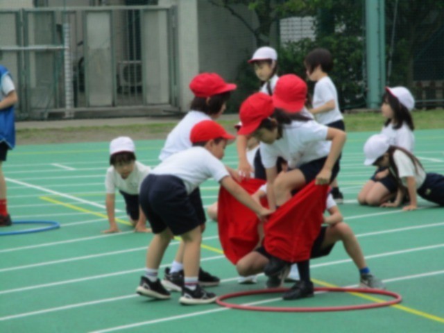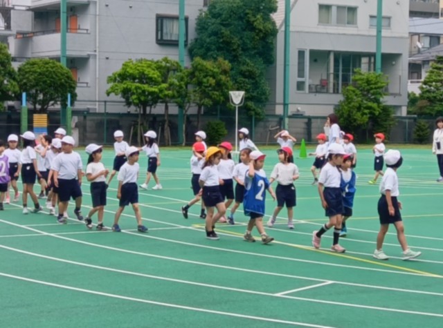 1・2年生が団体競技の練習をしています。入退場の仕方を確認したり、実際に競走したりしています。当日は、勝利目指して全力で取り組む子どもたちの姿を、御期待ください。
