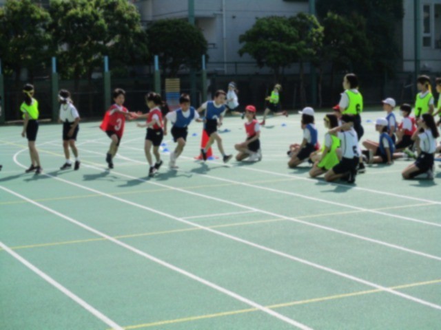 リレーの練習の様子です。低学年はハチマキの結び方や服装など、安全に行うための基本的なことから学んでいます。高学年はチームごとのバトンパス練習から試走を行いました。普段よりも早い登校などで保護者の皆様には御迷惑をおかけしております。御理解と御協力をよろしくお願いいたします。
