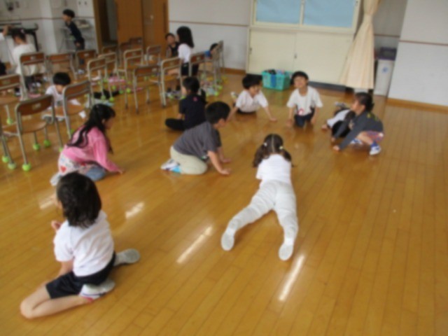 中:1年生の音楽です。楽器の音に合わせて動物になりきっています。動きだけでなく表情までなりきっている子がいて、とてもかわいかったです。