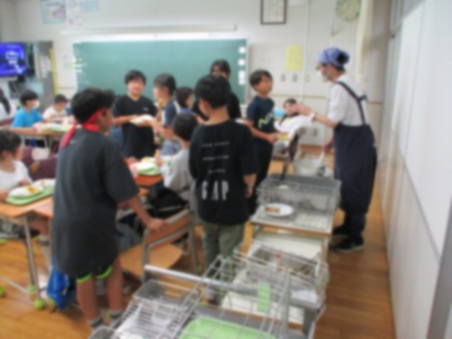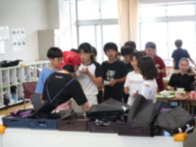 5・6年生の給食の時間の様子です。運動会練習が続く中で疲労がたまっていることと思いますが、食欲旺盛です。本日のメニューはカレーライスでしたが、お代わりの列に並ぶ子がたくさんいて、ほほえましかったです。