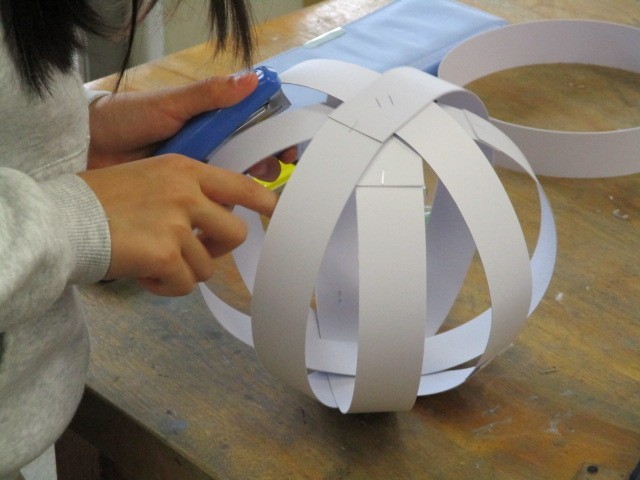 下:4年生の図工です。紙バンドをステープラーでとめて、丸い形を作っています。どんな作品に仕上がっていくのか楽しみです。
