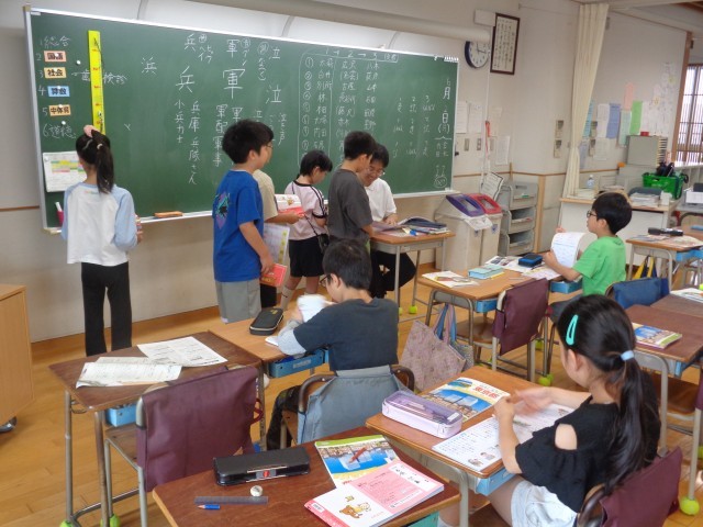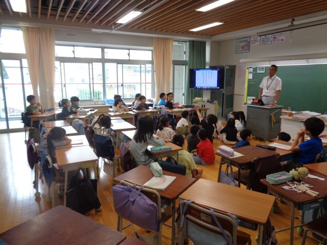 今日は今年度初めての学校公開です。1年生は学年で体育をしました。体を使ったじゃんけんは、みんなで声を合わせて楽しそうでした。2年生から6年生もそれぞれの学習で楽しく活動していました。