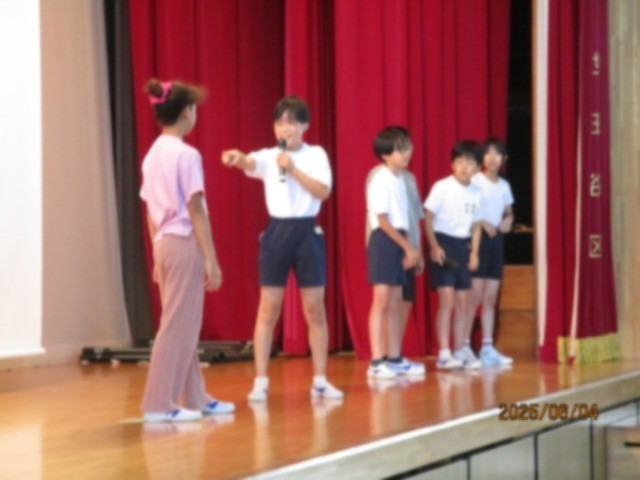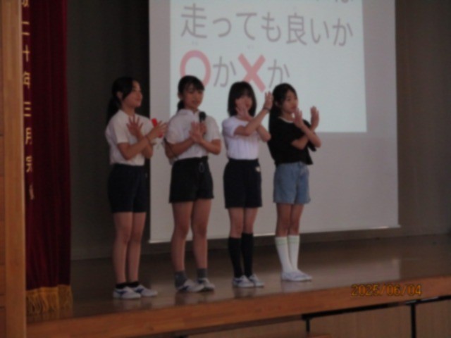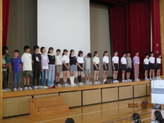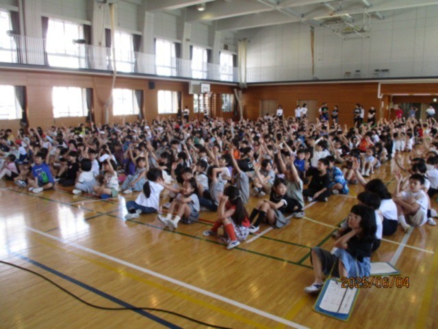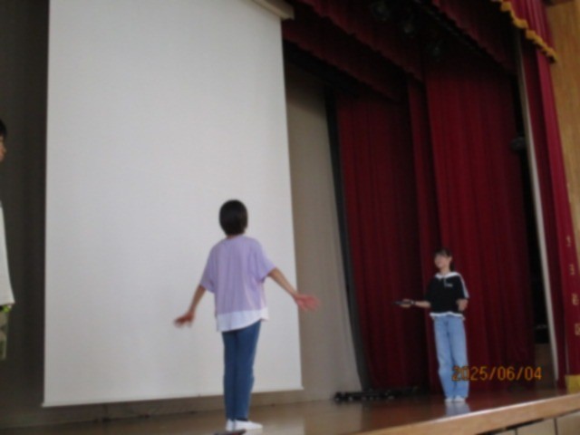 今朝は体育集会でした。水泳の授業での決まりや気を付けること、そして上手に泳ぐための方法について、寸劇を交ぜた〇✕クイズで紹介してくれました。来週から始まる水泳に向けて、着々と準備をしています。