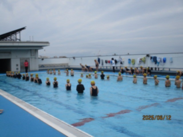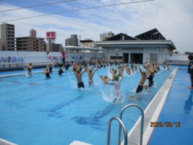 梅雨の晴れ間に恵まれ、4年生が水泳を行いました。バディなどの水泳学習のルールを確認した後に、水慣れをしました。先生の声に合わせて歩いたりジャンプしたり、とても楽しそうに取り組んでいました。