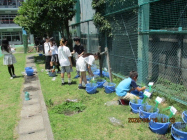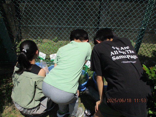 5月下旬に植えた苗ですが、大分伸びてきました。大きな「おにぎり」を作ることができるように、各自が責任もって育てています。