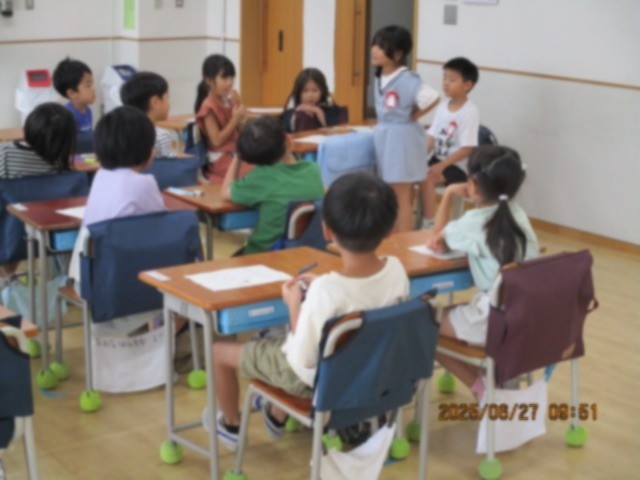 わがままな振る舞いをしてしまった自分自身を振り返り、どうすれば良かったのかを考えました。友達が考えを発表するときには、全員がその子を向いて聞くことができ、大変感心しました。