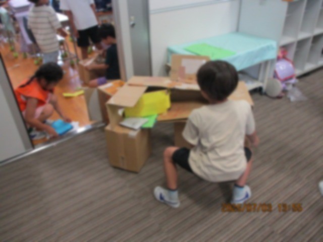 1学期も終わりが近づき、お楽しみ会の準備をしている学級が出始めました。段ボールを貼り合わせて、大きな何かを作っています。学級全員が大いに楽しめるものになると良いです。
