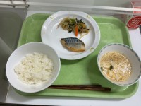 本日の献立*ごはん*牛乳*魚のねぎみそ焼き*すまし汁*もやしのピリ辛あえ 都内で...