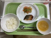 本日の献立*ごはん*牛乳*魚のねぎみそ焼き*すまし汁*もやしのピリ辛あえ 都内で...
