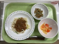 本日の献立*ジャージャーうどん*牛乳*野菜の中華味*のり塩大豆 今日はリクエスト...