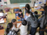 地球儀を使って学習しています。一人1回は触れるように、担任がしっかりと指示を出し...