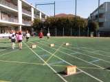 3年生の小型ハードル走で使用しているのは、印刷室のいらなくなった箱です。これを斜...