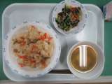 本日の献立 *わかめとじゃこのごはん *牛乳 *生揚げのそぼろ煮 *きゅ...