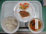 本日の献立 *チキンカレーライス *牛乳 *シャキシャキ野菜 *みかん ...