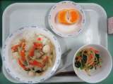 本日の献立 *中華丼 *牛乳 *ナムル *ぽんかん 食材産地 にんに...