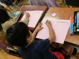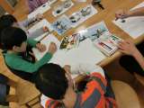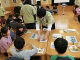 牛乳キャップの取り方を子どもたちがやさしく説明していました。グループごとに話が盛...