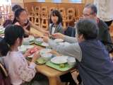 参加していただいた皆様におもてなしの心を込めて、給食を運ぶ子どもたち。ていねいに...