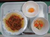 本日の献立 *そぼろごはん *牛乳 *かき玉汁 *もやしのごま風味 ...