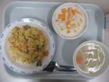 本日の献立 *パエリア *牛乳 *野菜スープ *フルーツヨーグルト ...