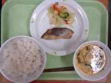 本日の献立 *ごはん *牛乳 *魚の香味焼き *かきたま汁 *野菜の即席漬け ...