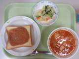 本日の献立 *きなこバタートースト *牛乳 *ミネストローネ *グリーンサラダ ...
