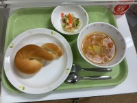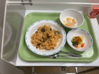 本日の献立*チキンライス*牛乳*かぼちゃ入りサラダ*フルーツヨーグルト 今日はハ...