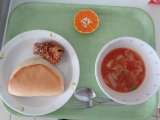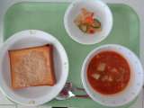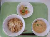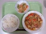 本日の献立 *キーマカレーライス *牛乳 *野菜の即席漬け *フルーツポンチ ...