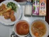 今日は、2学期最後の給食です。セレクトドリンクとフライドチキン、ベイクドポテトと...