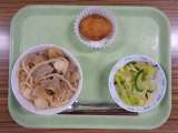 本日の献立 *五目うどん *牛乳 *キャベツの浅漬け *もちもちポテト 蒸...