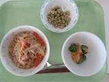 本日の献立 *しょうゆラーメン *牛乳 *きゅうりの中華味 *のり塩大豆 ...