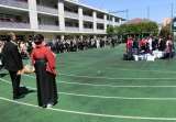 担任と過ごす最後の学級指導が終わりました。それぞれのクラスが一つになって校庭に集...