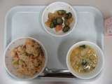 本日の献立 *中華風おこわ *牛乳 *白菜と肉団子のスープ *きゅうりの...