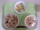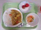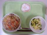 本日の献立 *ペンネミートソース *牛乳 *マセドアンサラダ *清見オレ...