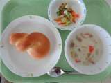 本日の献立 *しょうゆラーメン *牛乳 *キャベツの浅漬け *メープルケーキ ...