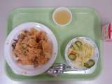 本日の献立 *チキンライス *牛乳 *コーンサラダ *りんごゼリー ...