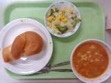 本日の献立 *ミルクパン *牛乳 *ミネストローネ *コーンサラダ ...