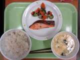 本日の献立 *ごはん *牛乳 *魚の梅醤油焼き *吉野汁 *野菜のごま...