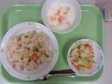 本日の献立 *チャーハン *牛乳 *野菜のごま風味 *フルーツヨーグルト...