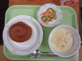 本日の献立 *ココアパン *牛乳 *コーンシチュー *白菜のサラダ ...