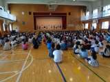 全校児童が体育館に集まって、音楽朝会を行いました。 ピアノに合わせて、みんなで校...