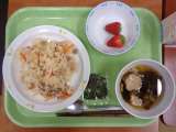 本日の献立 *ちらしずし *牛乳 *すまし汁 *いちご 食材産地 わ...