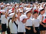 全ての子どもたちの立派な行進が終わり一堂に会しました。6年生による選手宣誓、1年...